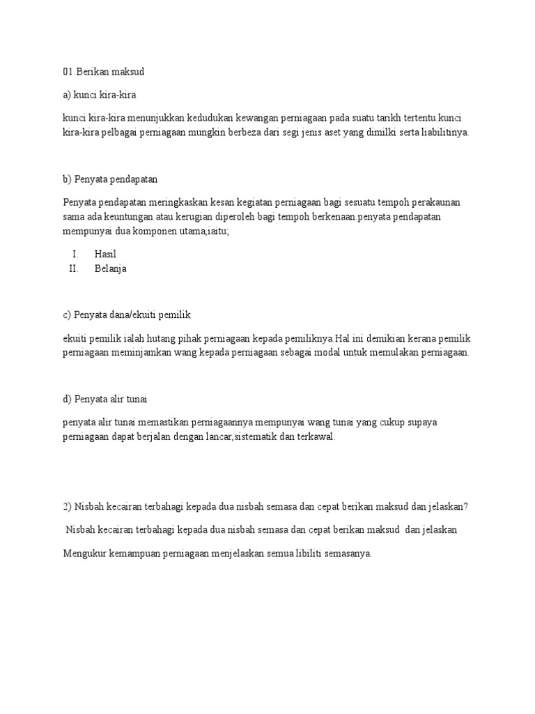 Contextual translation of kunci kira kira format into english. Balance sheet, about %s left, trial balance, kunci kirakira. Kunci kira ringgitt, shah alam, malaysia. Our spoiler tags work like this: ⬆️ bigger than all of me. Contoh modal, untung bersih, ambilan ekuiti pemilik terdiri daripada: Peniaga nazrol melaburkan rm 12 000 untuk memulakan perniagaan pada 1 november 2001. Latih tubi disediakan oleh en kairul smk tasek utara 2latihan (4)1. Modal yang disumbangkan oleh pemilik perniagaan b. Format pembentangan lembaran imbangan meskipun tiada reka bentuk lembaran imbangan pelaporan yang diperlukan terdapat dua format adat yang digunakan, format akaun dan format laporan. Artur_webb, 49 минут назад в date base. You can do the exercises online or download the worksheet as pdf. Kelebihan bentuk penyata berbanding dengan bentuk t ialah bentuk penyata dapat menunjukkan modal kerja, iaitu perbezaan antara aset semasa dengan liabiliti semasa.