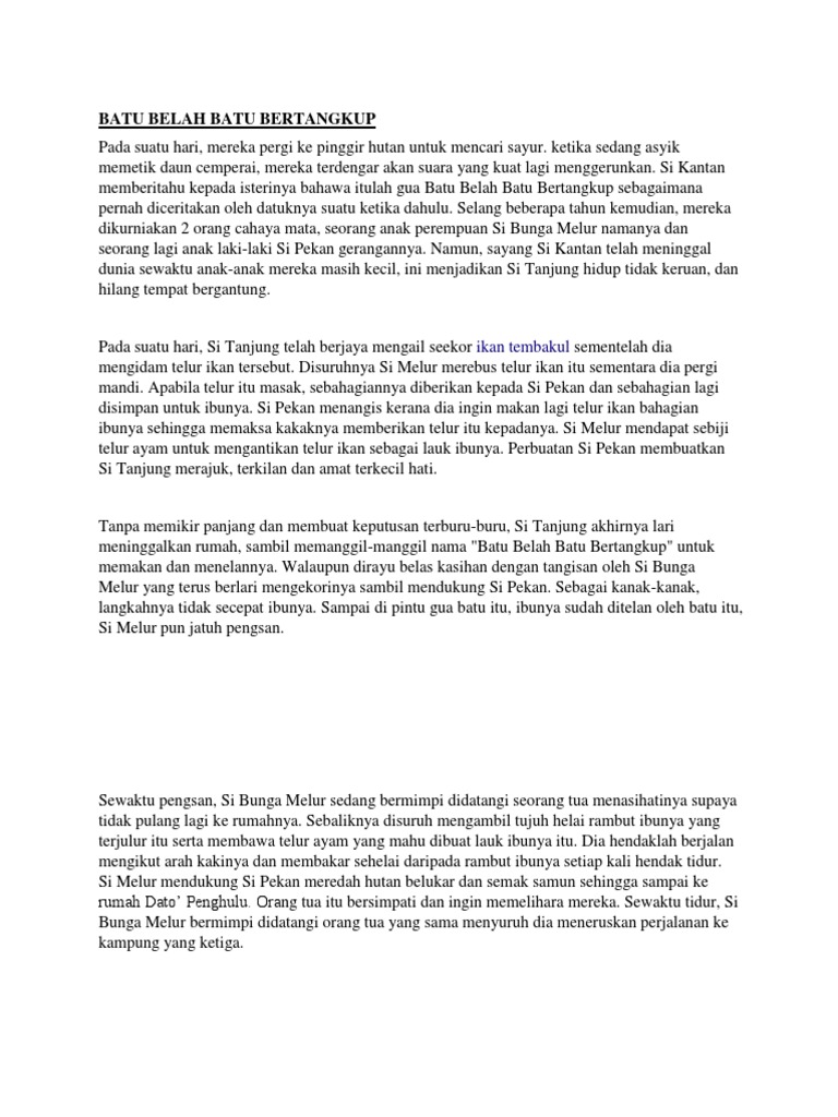 Batu Belah Batu Bertangkup from imgv2-2-f.scribdassets.com Pernahkah kamu mendengar cerita legenda batu belah batu bertangkup dari aceh? For example, she longs for food that are really hard to find. Kisah tersebut memiliki pesan moral yang cukup baik untuk buah hati sementara versi malaysia memiliki tokoh mak tanjong yang memiliki dua anak, melor dan pekan. Filem batu belah batu bertangkup merupakan sebuah filem melayu yang diterbitkan di malaysia pada tahun 1959. Batu belah batu bertangkup siri perpustakaan sekolah dbp (том 178). A married couple, kantan and tanjung have been married for quite sometime but they still do not have a kid. Seperti yang sudah disebutkan di atas, kisah dari. Batu bata merupakan material yang dapat digunakan untuk berbagai macam keperluan membangun, baik itu untuk membuat pondasi atau tembok rumah.